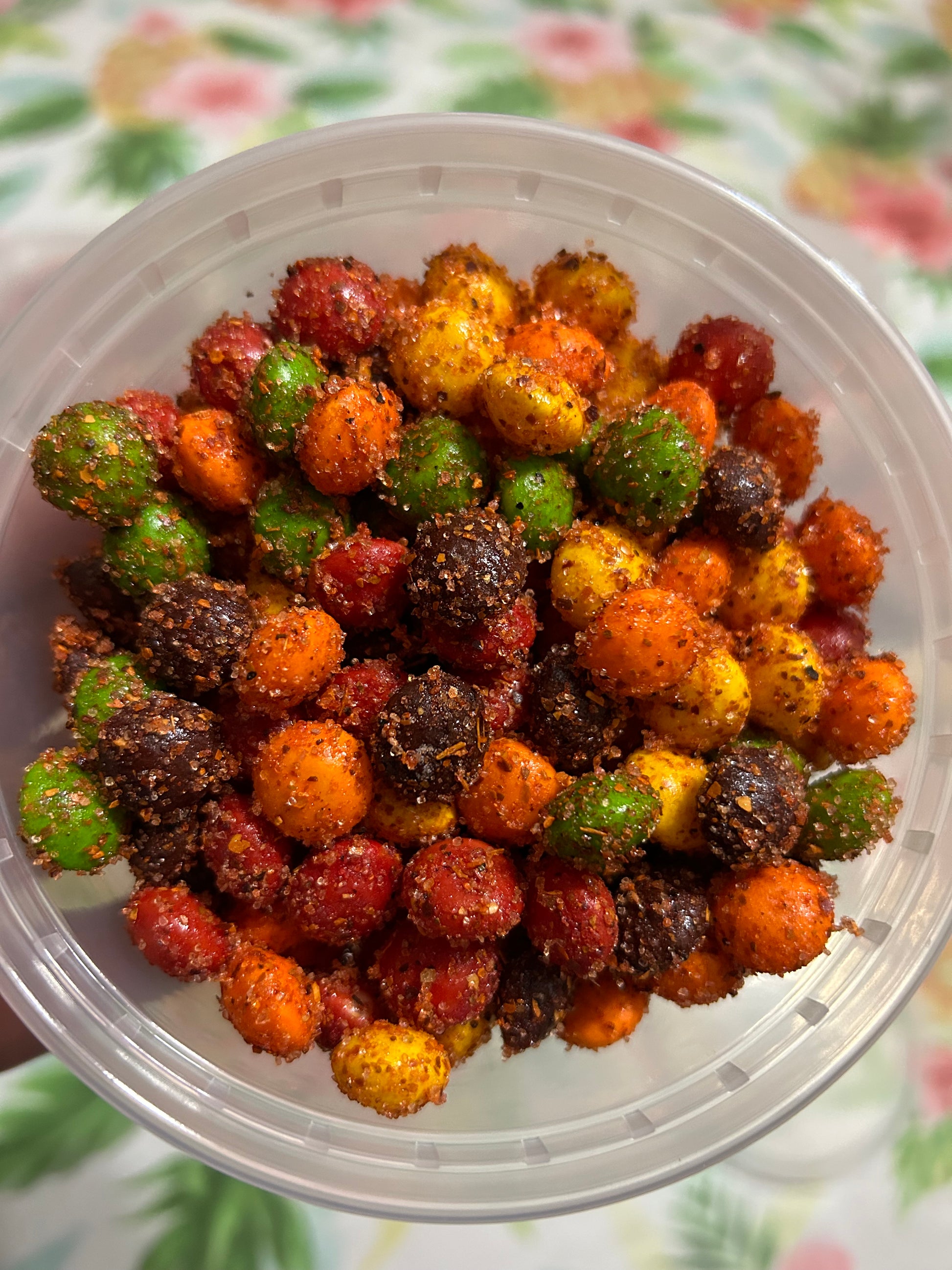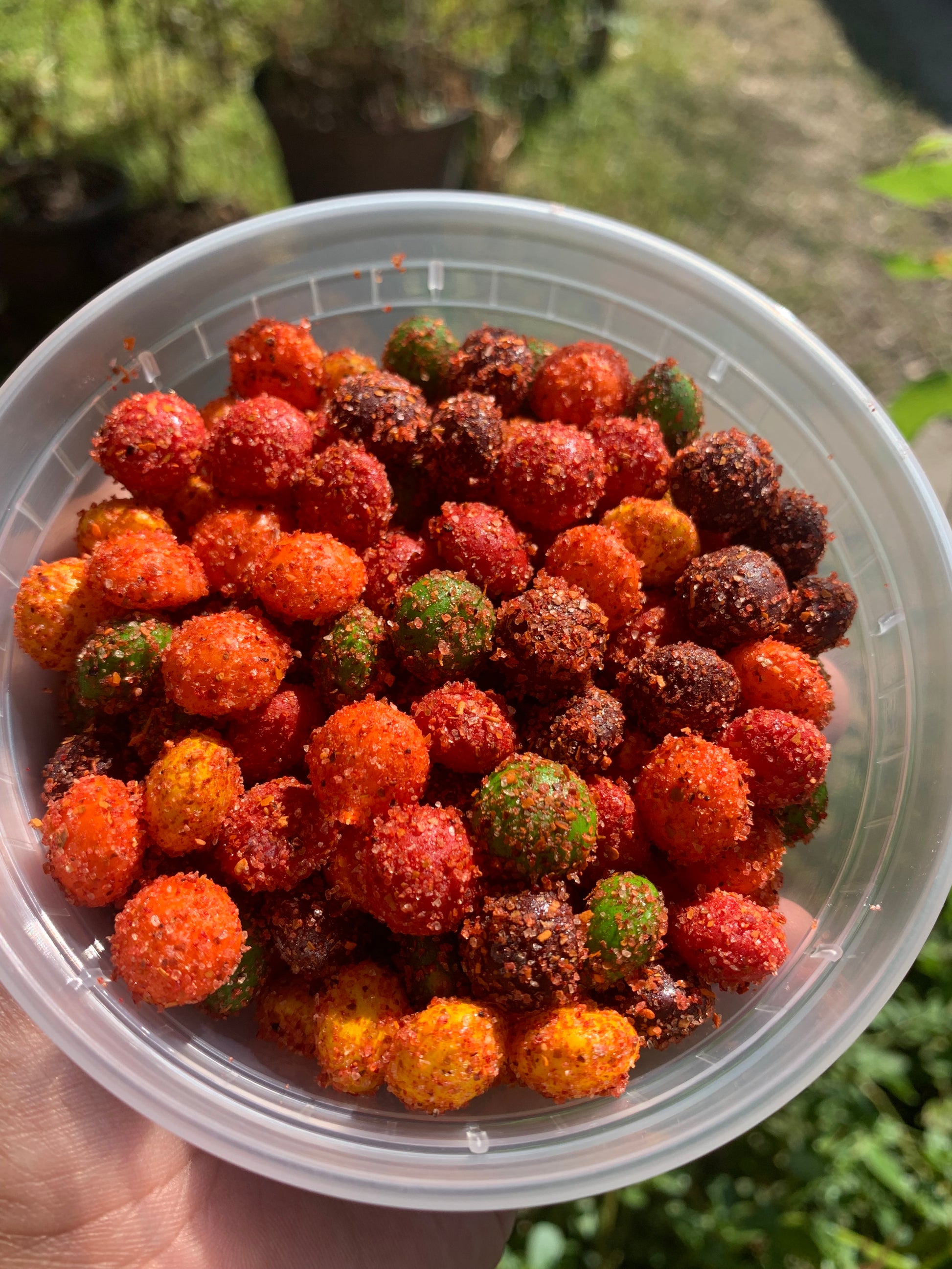Enjoy a burst of flavor with Comets (skittles), coated in a delicious blend of chamoy and tajin. Indulge in the perfect balance of tangy and sweet, with a touch of heat. Perfect for a unique and satisfying snack experience.