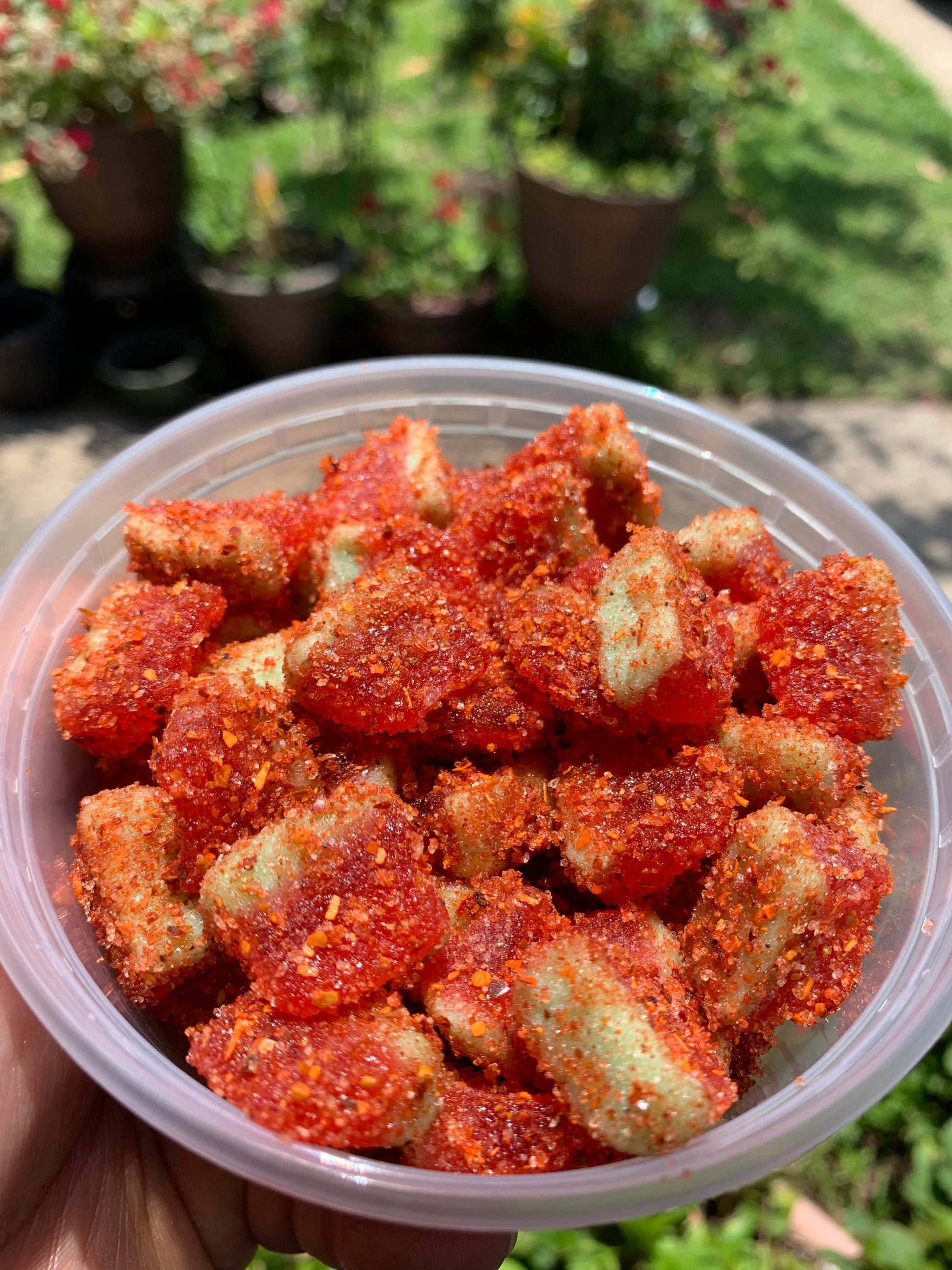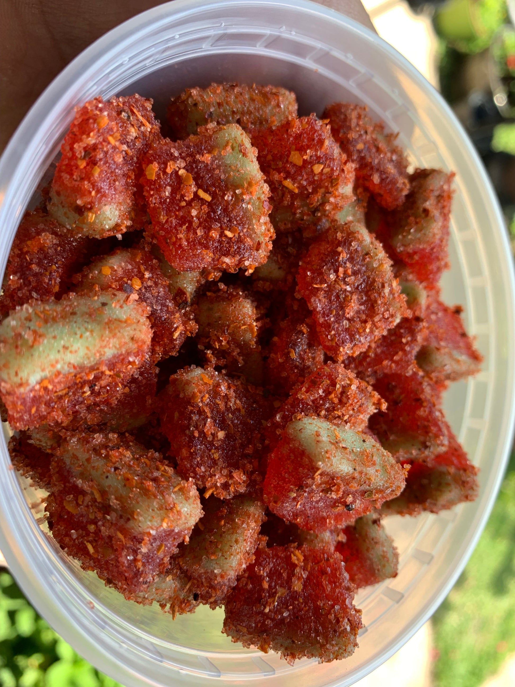 Satisfy your cravings with our Sandía Slices gummies! These delicious treats are covered with a perfect blend of chamoy and tajin, providing a burst of flavor in every bite. A unique and satisfying snack that combines the sweetness of gummies with the tanginess of chamoy and the spiciness of tajin. A must-try for those who love bold and exciting flavors!